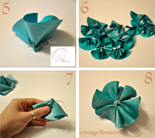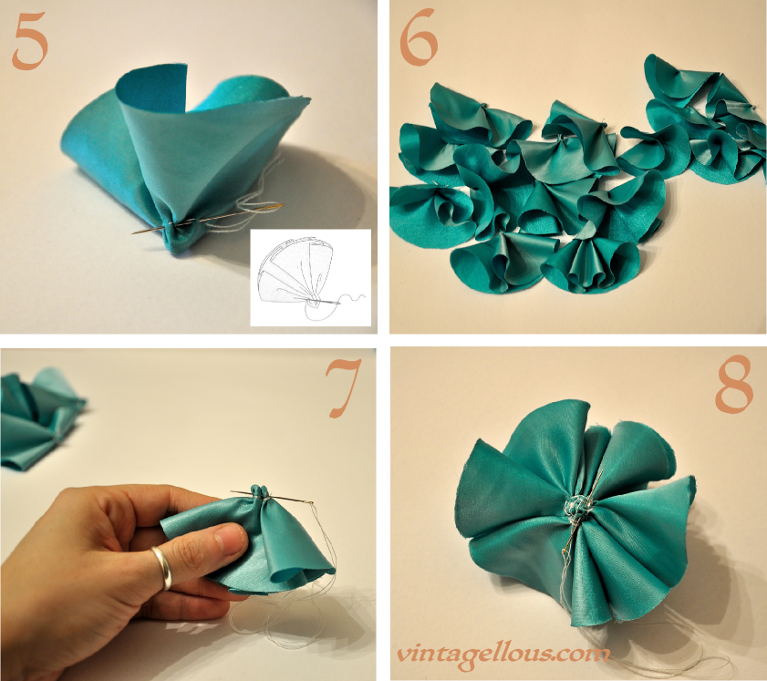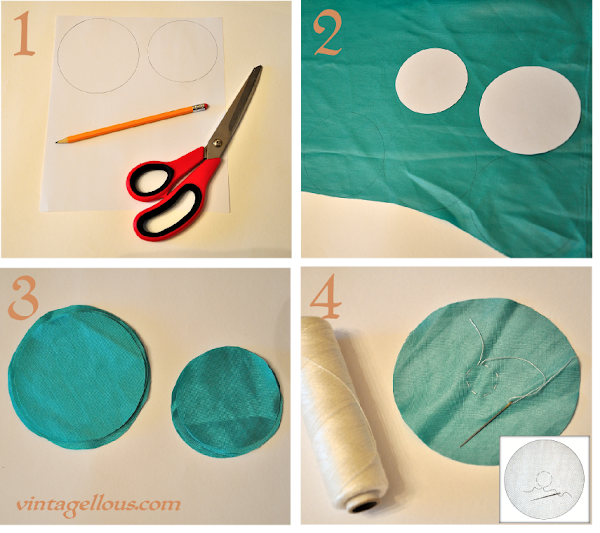 5. Tensamos los hilos y rematamos bien, así conseguimos fruncir cada circulo.