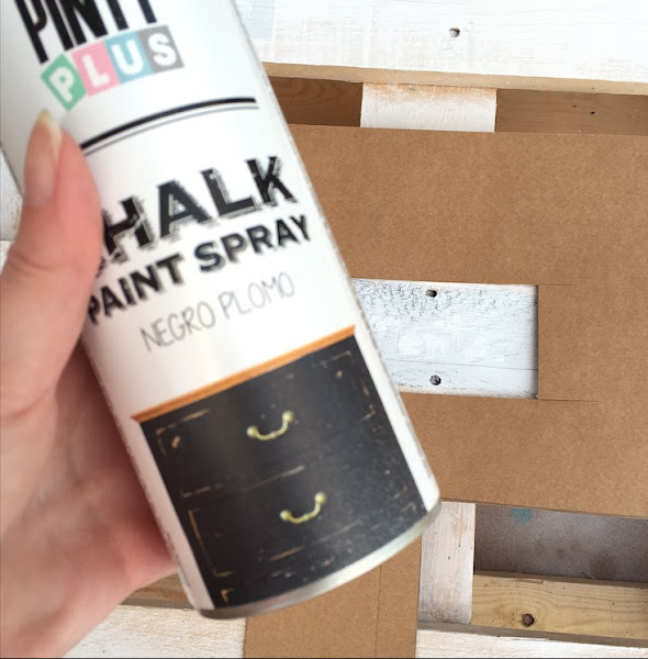 Con estos 4 elementos haremos un fresero LowCost , perfecto para entretener a los mas peques de la casa con sus cuidados. Lo primero que haremos es pintar nuestro palet, blanco o del color que más os guste. En mi caso lo he pintado de Blanco Roto, lo he lijado para atenuar el color y dejar un acabado mas rustico. También he pintado unos recuadros con Chalk Paint Negro Plomo CK799, para crear unas pizarras donde poder escribir.