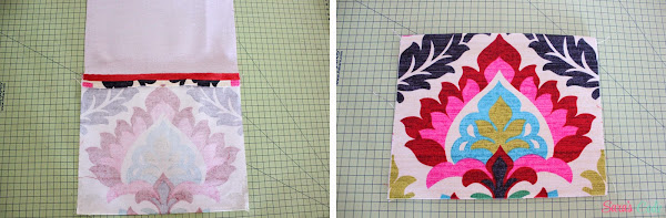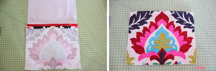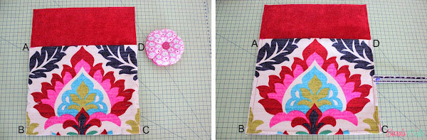 En cuanto a las medidas de los bolsillos, el ancho se mantiene igual que la tela exterior de la pieza principal. El alto depende de vosotros, en este caso, hay una diferencia de 3" (7,6 cm) respecto a la tela exterior de la pieza principal.