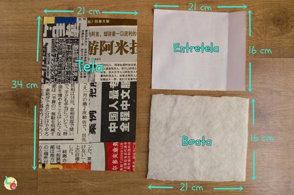 Empezamos cortando la tela, la entretela rígida y la boata de las siguientes medidas