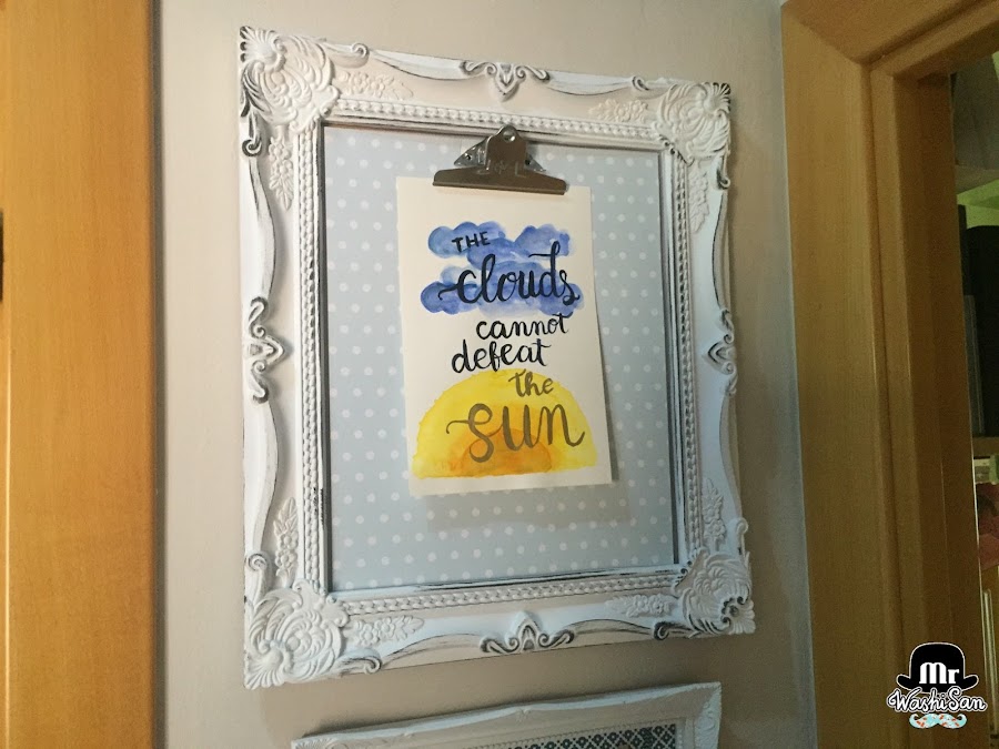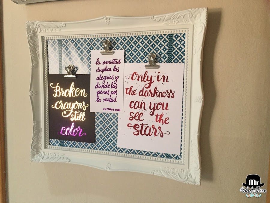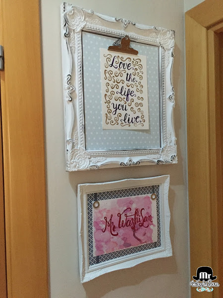 Y ya tenemos nuestra gallery wall. Como veis es una manera muy divertida de exponer nuestras creaciones artísticas. Yo la utilizo sobretodo para exponer láminas de lettering, pero podéis colgar lo que creéis: proyectos de scrap, lay outs... Y además, con la ventaja de que automáticamente queda enmarcado, dándole ,más presencia.