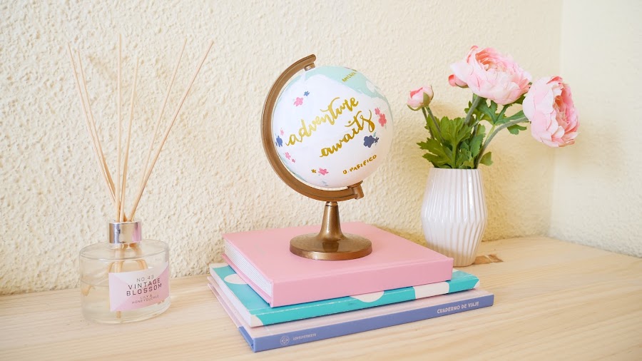Hoy os traigo un post cargadito de diy, pues os quiero mostrar cómo personalizar un globo terráqueo para convertirlo en una bonita bola del mundo con lettering.