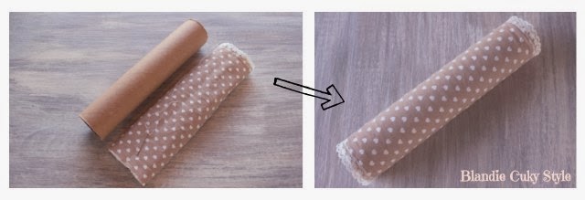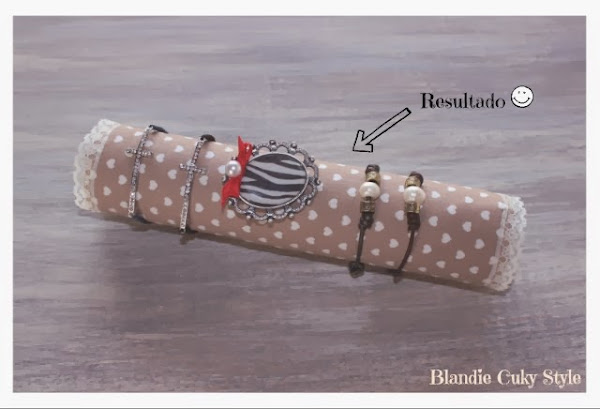 Ahora, sólo hace falta colocar el tubo de cartón dentro del tubo de tela y... tachán!! Ya tenemos el guarda pulseras :-)