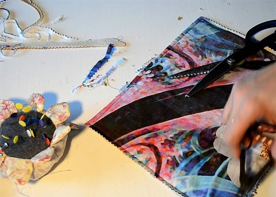 -Una vez cosido cortamos los las tijeras de zig-zag justo por fuera de la costura.