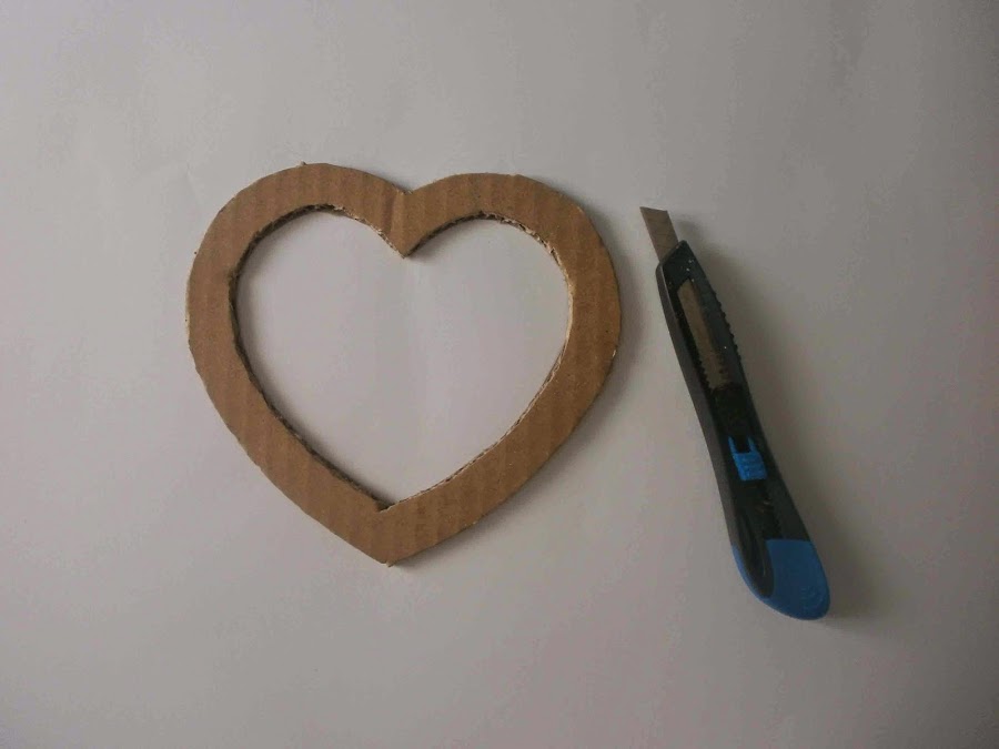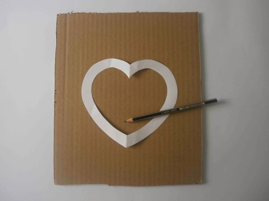 Dibujé el corazón en el cartón y lo corté con el cutter.