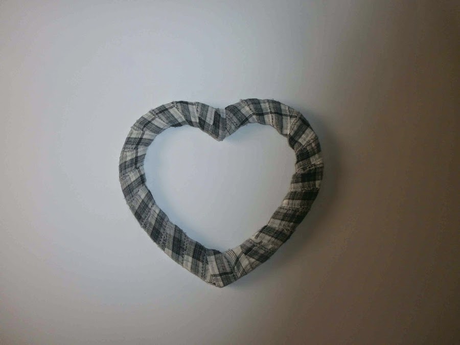 Con un retal de tela que tenía en casa fui enrollando el corazón poniendo una gota de silicona al principio para que no se me deshiciera.