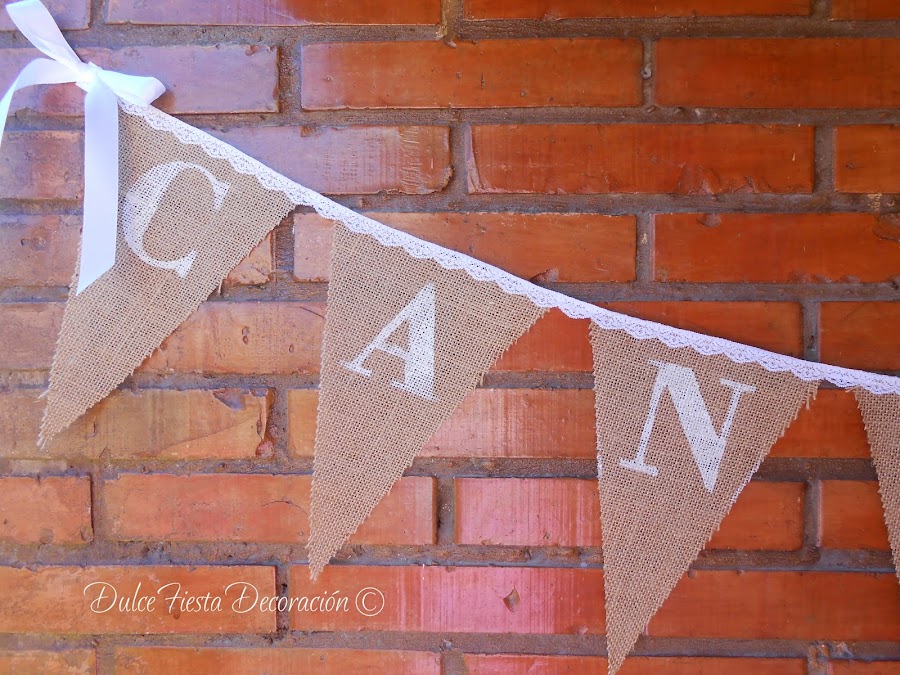 El Diy que hoy os traigo es precisamente una guirnalda para decorar la mesa dulce o Candy Bar de nuestra celebración con tela de arpillera o tela de saco.