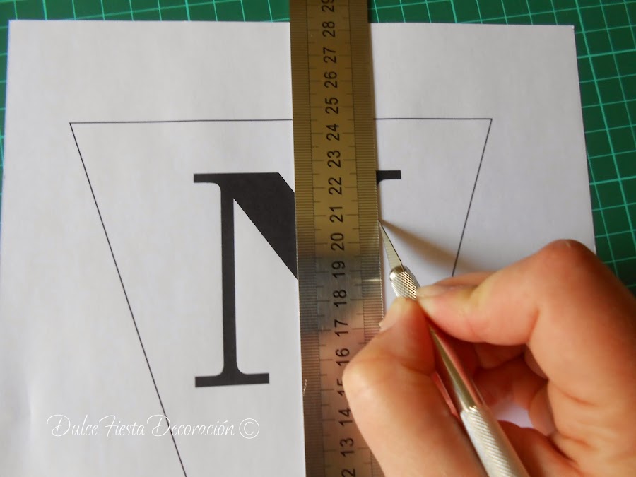 Cortamos con el cútter bisturí todo el contorno de las letras, siempre protegiendo la mesa donde vayamos a trabajar.