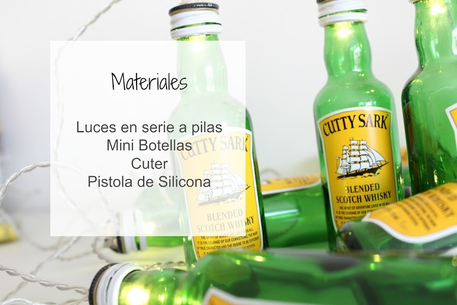 Tenias un montón de botellas!! Pero estas tan pequeñitas que me dieron la idea de hacer la guirnalda, es muy fácil de hacer y si tienes un bar o un evento es una idea genial para sorprender.