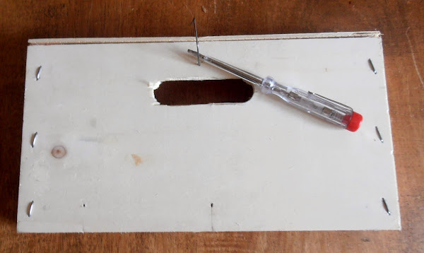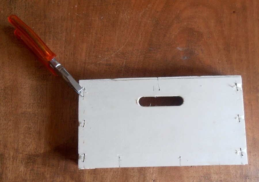Con el punzón marco un agujero, y lo hago más grande con un tornillo.
