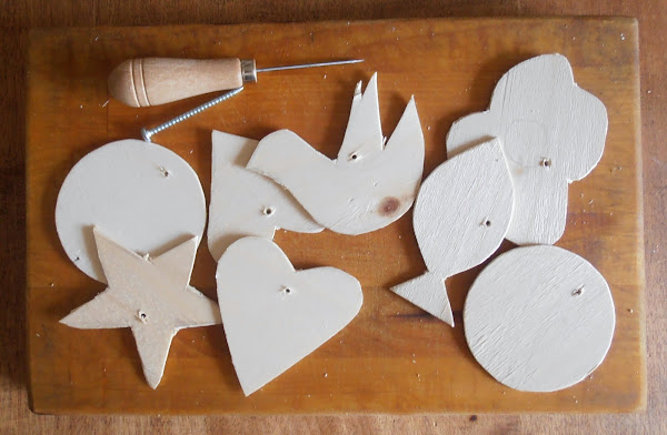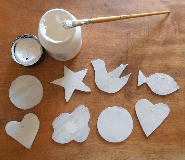En las placas, dibujo corazones, un pájaro, círculos, una estrella y una flor.