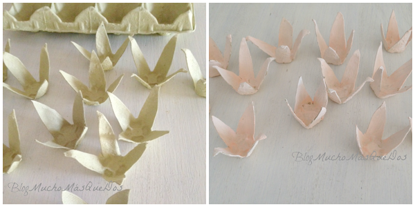 Ahora verás cómo realizar de forma sencilla una guirnalda de flores luminosas con la misma técnica de reciclaje de hueveras.
