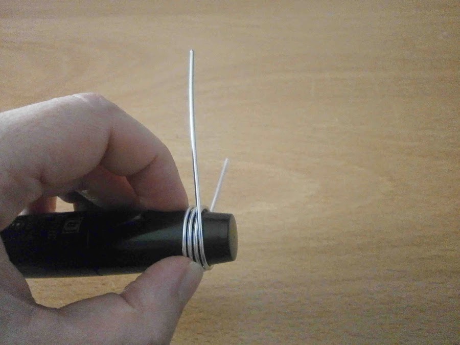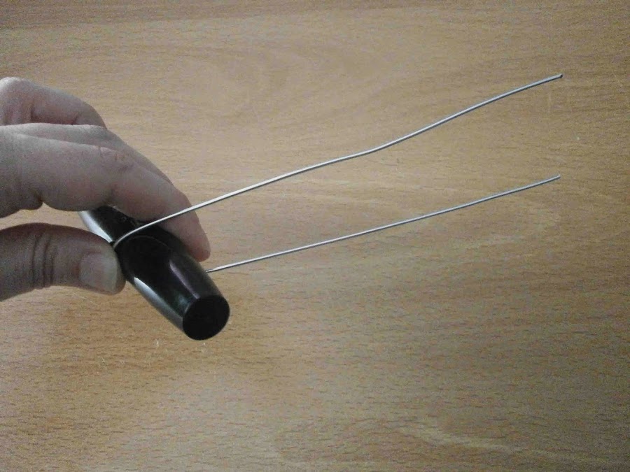 Con ayuda del objeto redondeado doblé el alambre por la mitad.