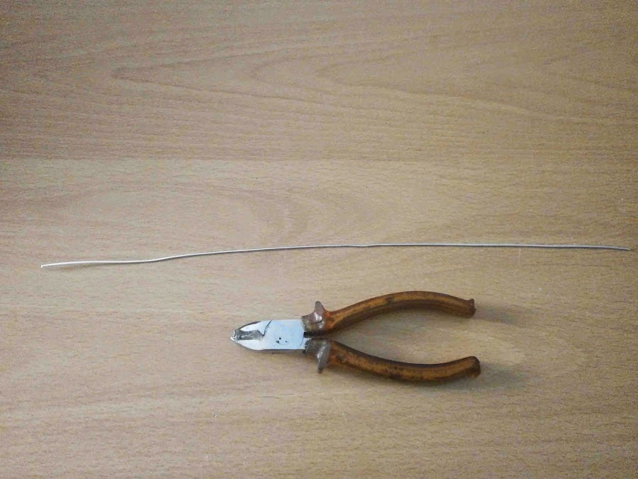 Materiales: Alambre de aluminio, tijeras, cinta, silicona, tenazas de corte, tenazas de punta larga y un objeto redondeado.