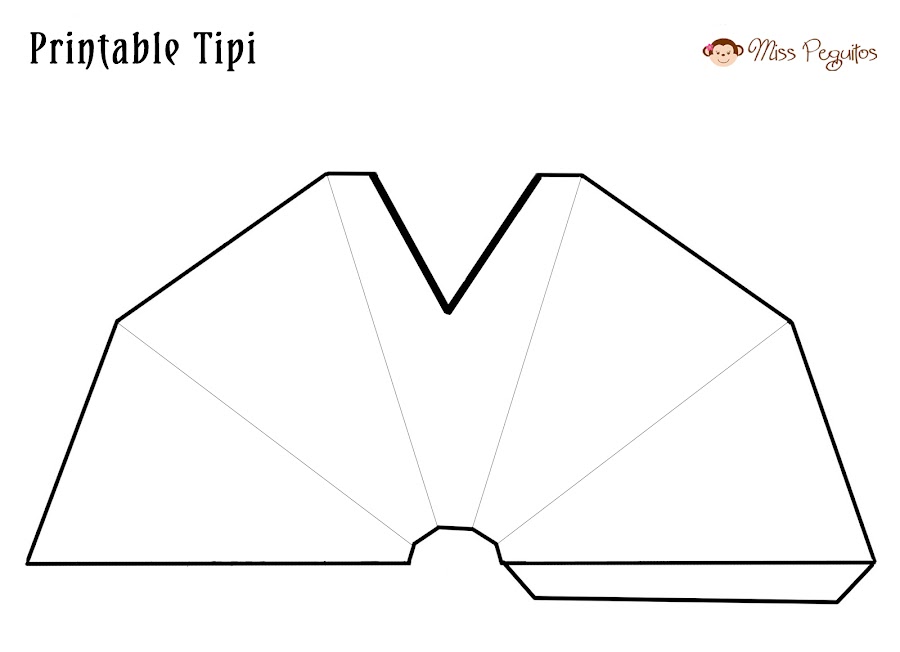 Para hacer los tipis basta con imprimir esta plantilla y decorarlos como más os guste, recortar, doblar por las líneas grises, pegar por la solapa y listo. Si queréis hacerlo más real, antes de pegarlo podéis añadirle arriba unos palillos de dientes pegados con pegamento.