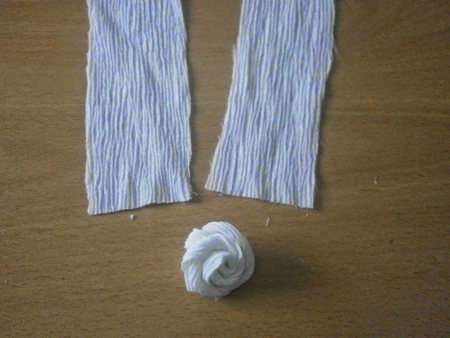 Con un retal de tela recorté tres tiras para hacer las flores.