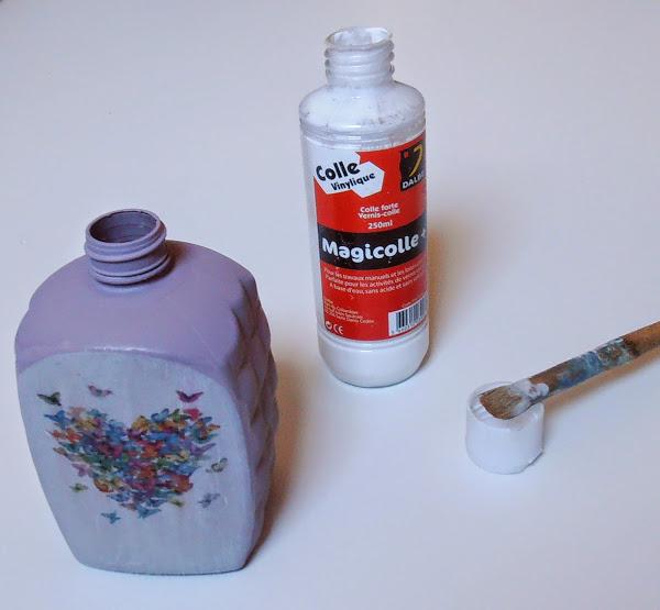 Con barniz autoadhesivo transparente, hago el decoupage.