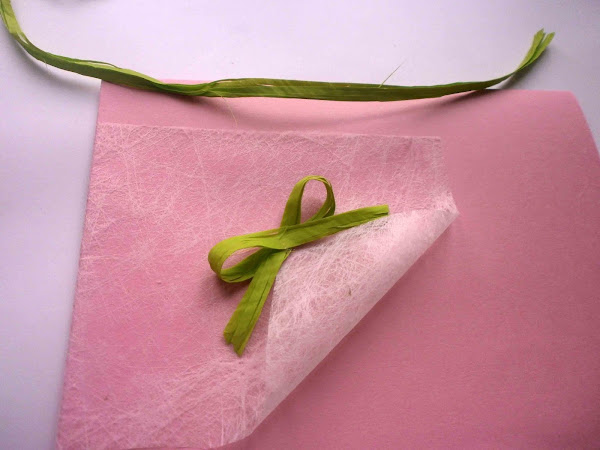 Materiales: Cartulina de dos colores tamaño folio, lápiz, regla, tijeras, pegamento de barra, papel de algodón, cuerda, una media perla, puntilla, tijeras de corte ondulado, tres tiras de lazo de raso de 1 cm de ancho mas o menos un trozo de perlitas y silicona.