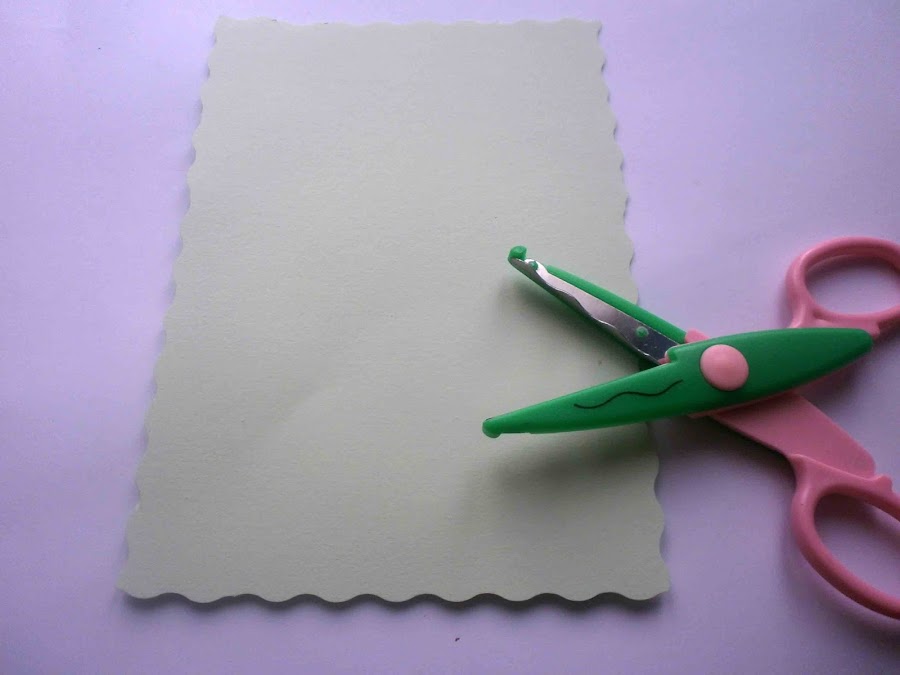 Por último con las tijeras de corte ondulado recorté un rectangulo que será la tarjeta que va dentro del sobre.