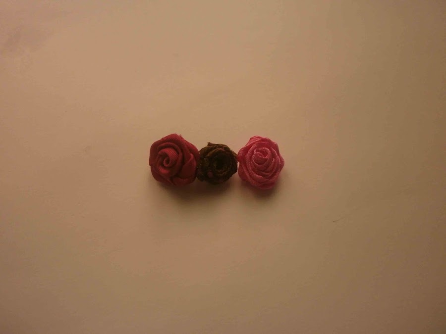 Hice tres rosas con los tres colores de lazo.