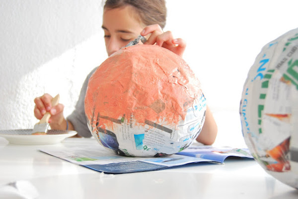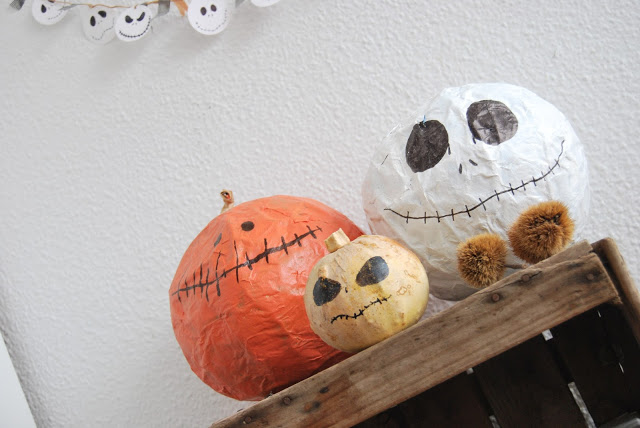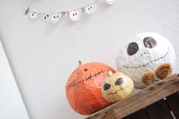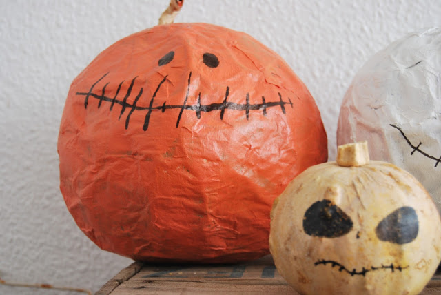 5. Y para acompañar a Jack, que siempre es nuestro favorito, unas calabazas de papel maché, porque forrar un globo con papel maché siempre es una buena idea :-)