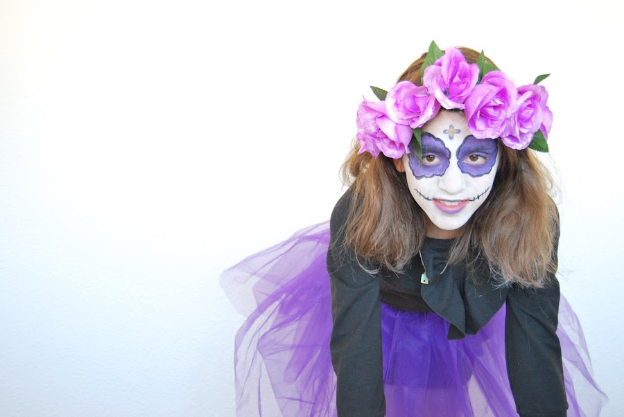 1. Disfraz de Catrina con un tutú y flores artificiales, ahhh y eso sí, el estupendo maquillaje de Snazaroo (todavía nos dura el que tenemos desde hace un par de años y sigue siendo estupendo para aplicar y para borrar!!).