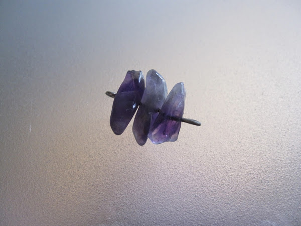 Primero, vamos a insertar unas cuentas en un ganchito de metal como el que se ve en la foto. Básicamente es un palito de metal con una arandela en un lado. Cuando insertamos nuestras cuentas (en este caso chips de piedras) debemos cerrar el otro lado creando otra arandela con un alicate. Tú puedes hacer esto con las cuentas que quieras o incluso con sólo una cuenta grande, una piedra... pero siempre tiene que tener dos enganches, uno a cada lado.