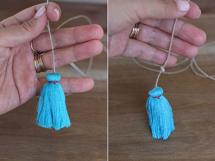 Los materiales son muy fáciles de conseguir, pompones de colores de venta en Etsy y hilo de pescador o cuerda muy fuerte.