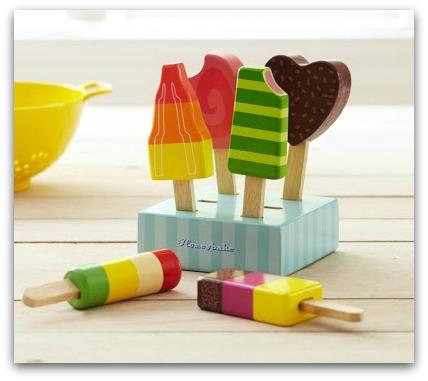 A mi hija Blanca que le encanta jugar en su supermercado con los alimentos de madera. Que si una pizza, un pastel, un zumo, una ensalada, etc... ¡Estos helados le encantarán!