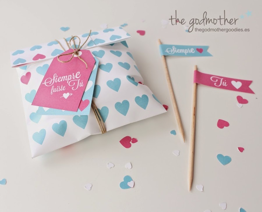 Envolvemos cada bombón con el papel rosa y atamos con el hilo dorado.