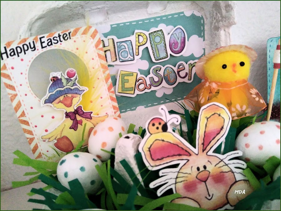 Conejitos, pollitos, huevos... vamos a celebrar Pascua con un DIY muy sencillo, una huevera llena de colores y unas ATCs muy simpáticas.