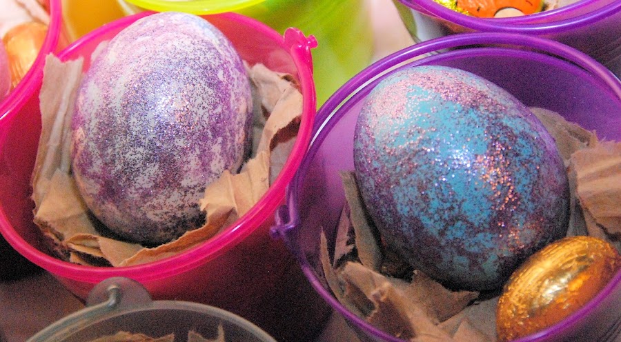 Nosotros de pequeños con mis padres, vaciábamos los huevos. Con la punta de un alfiler hacíamos dos agujeros, les vaciábamos y dejábamos secar. Luego, por uno de los agujeritos, metíamos un rollito de papel con alguna sorpresa.