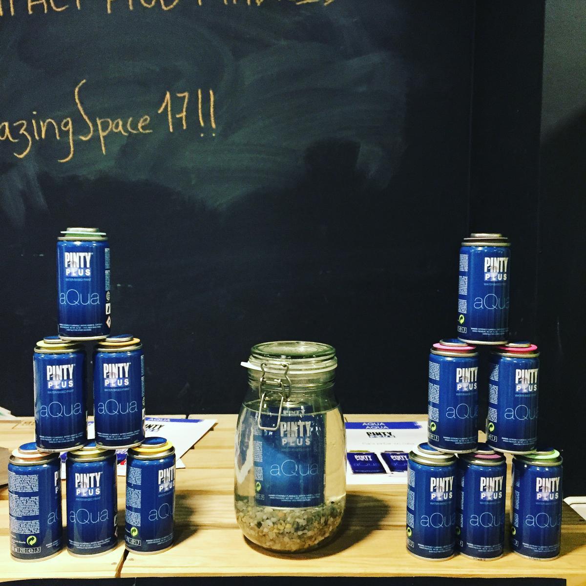 Para mostrar también un poquito de la gama Evolution, creamos un pequeño “muro” con botes pintados para que se pudiera observar bien tanto la resistencia como el color de esta gama que tanto nos gusta.