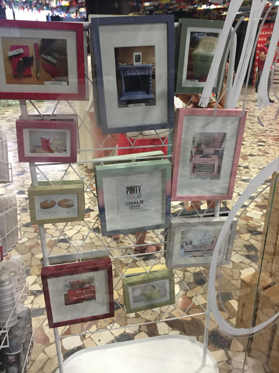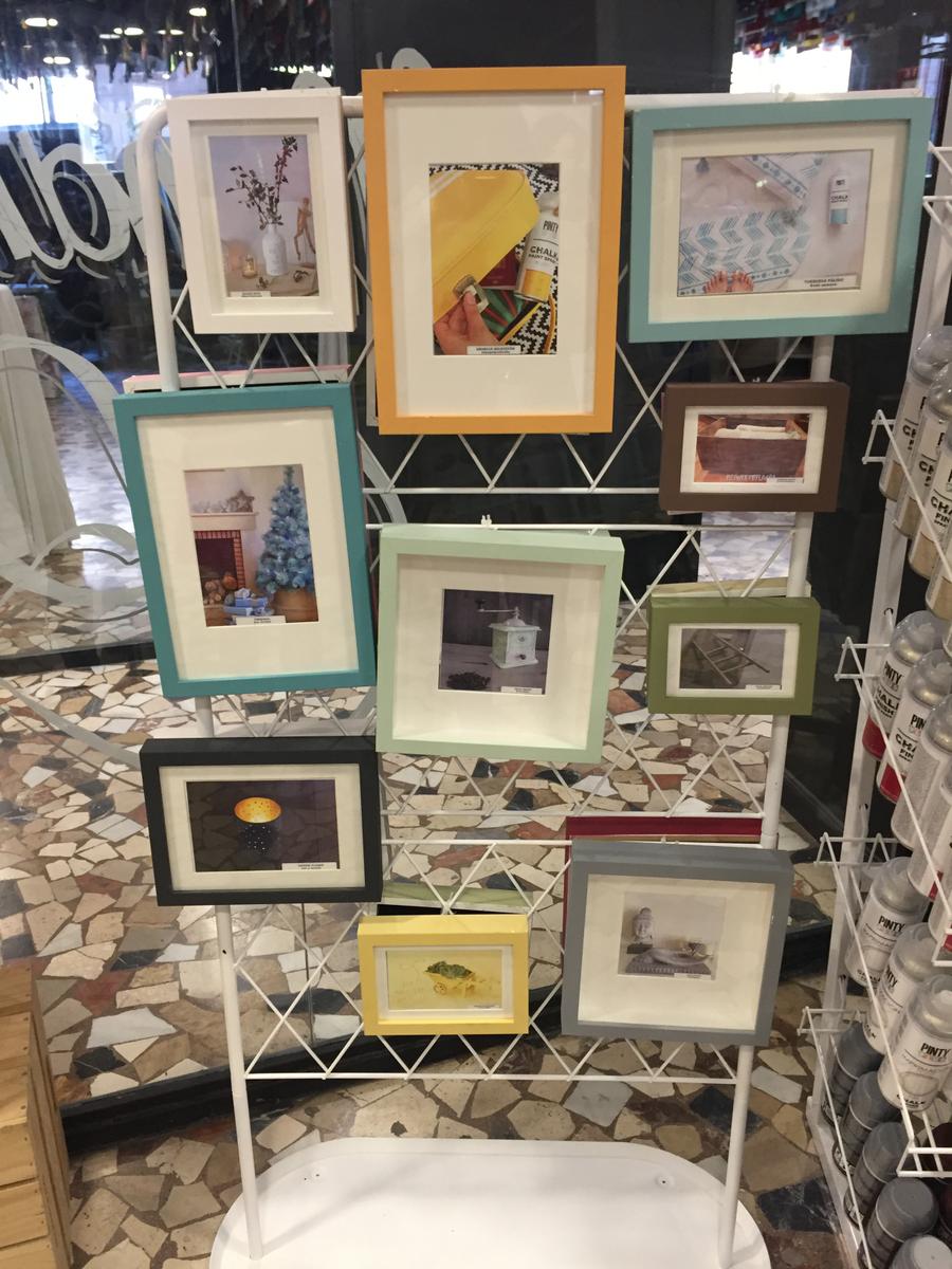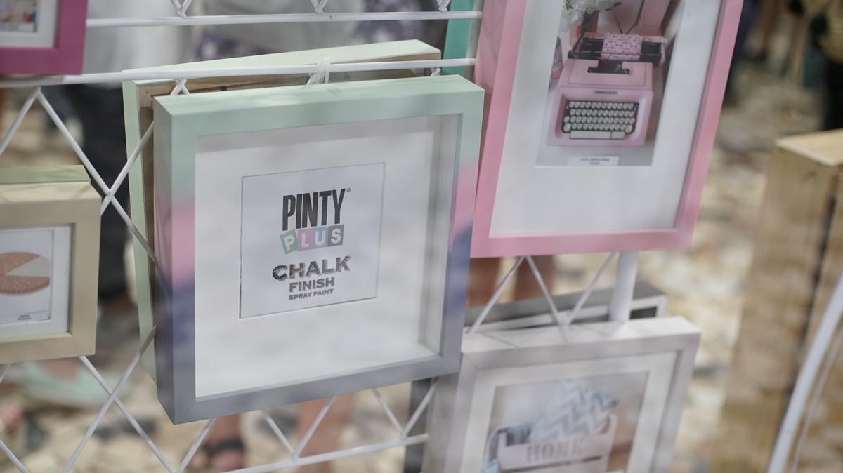 Para mostrar el trabajo de los bloggers creamos un mural con marcos de fotos pintados con Chalk Paint y en cada uno de esos marcos se podían ver proyectos de diferentes bloggers pintados con los diferentes colores de esta gama de pinturas.