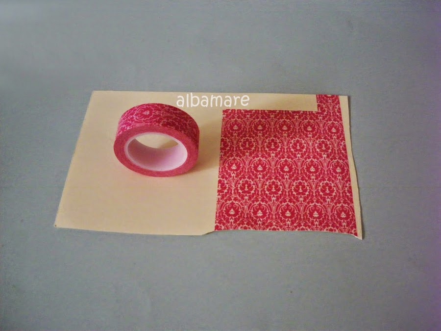 En una de las caras de la cartulina, pegamos el washitape en una extensión lo suficientemente grande, como para, que cubra la superficie que luego vamos a perforar.
