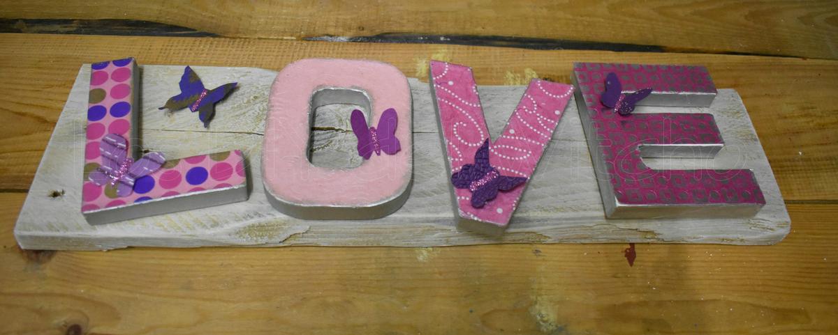 Corrían las vísperas de Navidad, cuando una amiga de mi hija quiso que le hiciese una decoración con letras para su nueva habitación, eso sí, tenia que ser un LOVE. Así que cómo uno me pareció poco, hice tres de diferente forma para que su madre escogiese el que iba a regalarle el Día de Reyes.