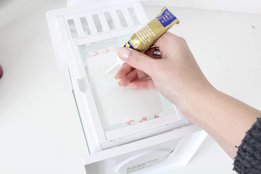 3 Paso: Pintamos dentro del contorno relieve con pintura cristal. Dejamos secar.
