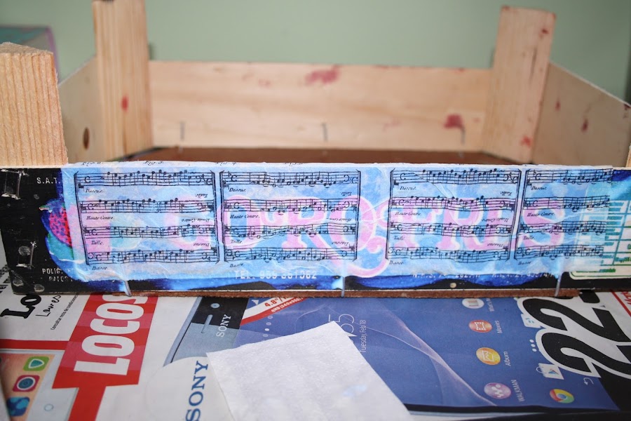 Veis que según lo pegamos el color es azulado pero no os preocupéis, es una mezcla entre la tintada de la servilleta y el pegamento y desaparece al secar.
