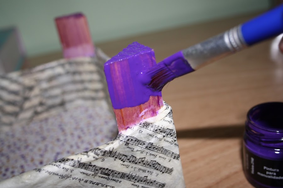 Ahora con la pintura y el pincel vamos a pintar la madera que ha quedado al descubierto.