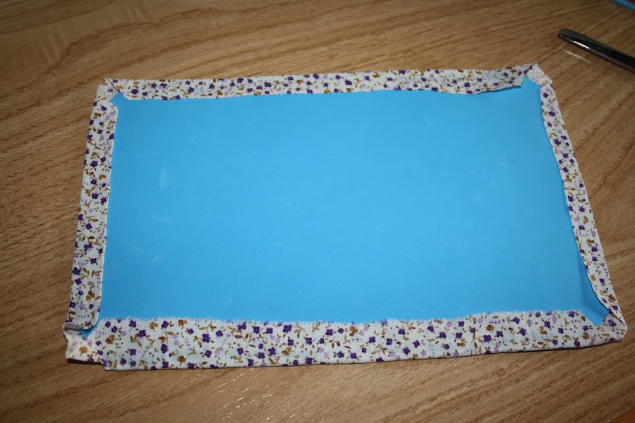 Situaremos el trozo de tela del tamaño lo más similar a nuestra lámina y pegaremos ambas con silicona.