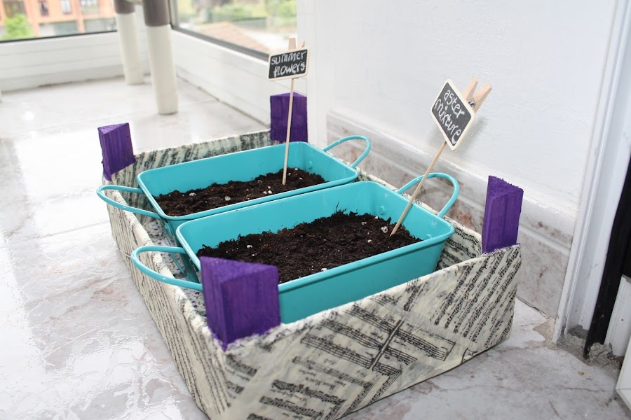 Ahora cubrimos con tierra el fondo de las jardineras, después echamos las semillas dentro y finalmente las tapamos con una capa abundante de tierra. Habrá que humedecerla para que vayan germinando y nazcan las flores.