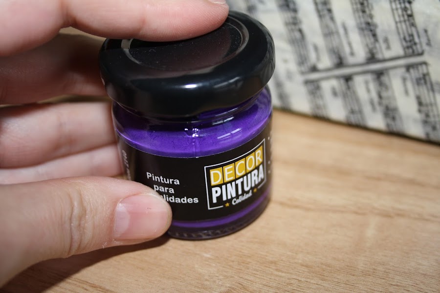 Aplicamos trozos desiguales y pequeños con ayuda del pincel hasta que cubramos el color original de la caja y obtengamos un cierto grosor.