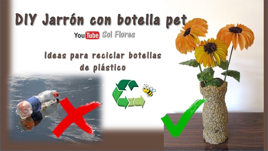 Hoy reciclaremos botellas pet, si, esas botellas de plástico que tanto daño le hacen a nuestro planeta, para crear un hermoso jarrón que te encantará.
