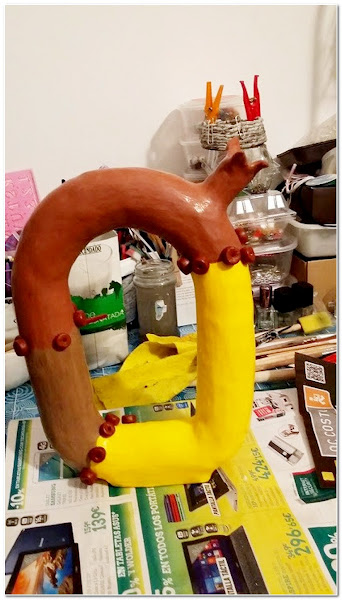 Cuando estuvo seco comencé a cubrirlo de pasta de papel y deje secar.