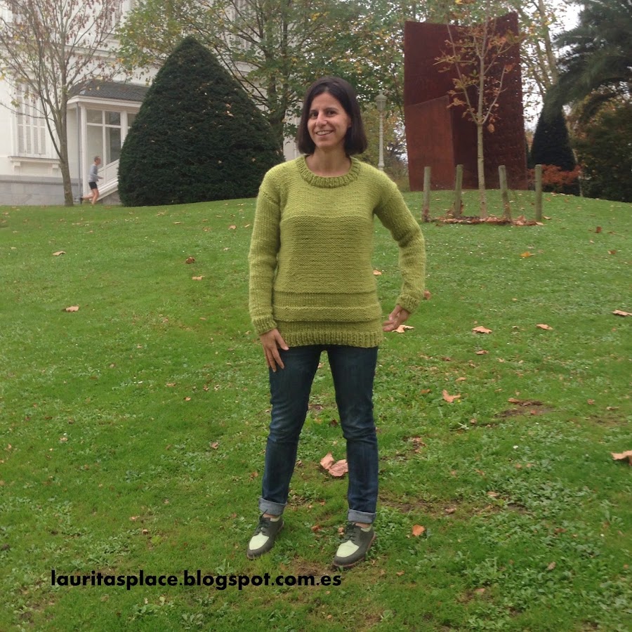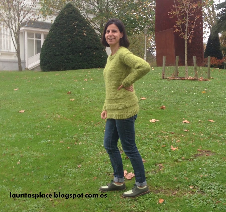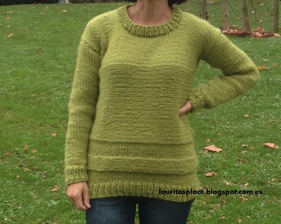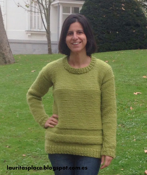 Como ves hablo en centímetros en lugar de en puntos como lo harían las tejedoras de verdad... pues por dos razones: la 1ª porque me aburre contar puntos, y la 2ª porque lo he tejido en función de mis medidas y como no tengo ni idea de tejer, ni de proporciones, ni nada parecido me he basado en mis medidas para hacerlo medianamente ponible.