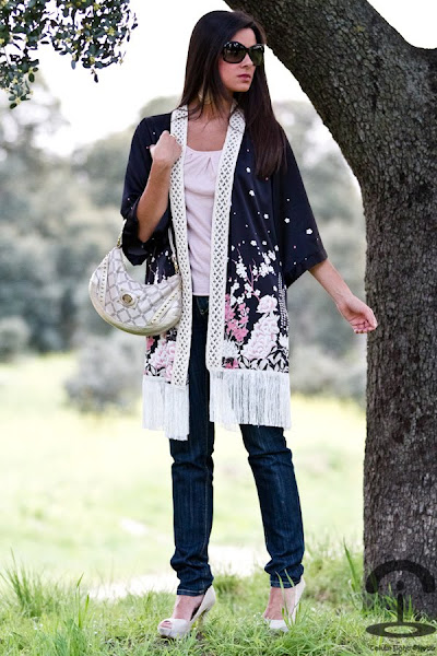 Si os líais con el corte o no os atrevéis siempre podéis decantaros por este sencillísimo tutorial de Crimenes de la moda, añadiéndole unos toques de pasamanería en las solapas y los bajos a una bata de inspiración oriental conseguimos un kimono ideal.