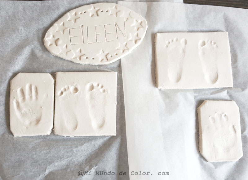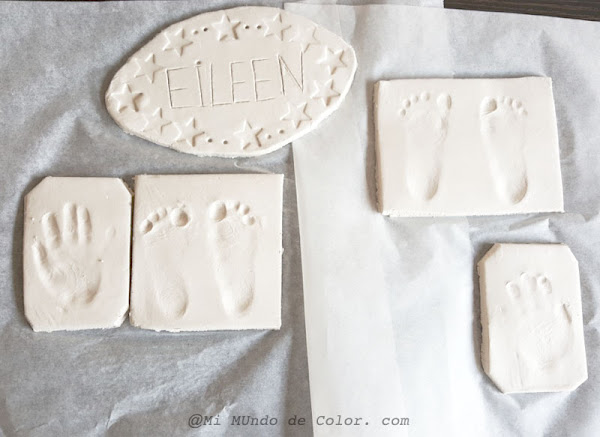 En el mercado existen algunos productos que vienen listos para su uso, los conocido portarretratos tipo libro (en un lado la foto del bebé y en el otro una masa donde esta la huella del bebé. También hay cajitas metálicas donde presionas la huella del peque y se tapa. Para lo que es, se me hace costoso y con un poco de maña lo haces tú y te sobra dinero.