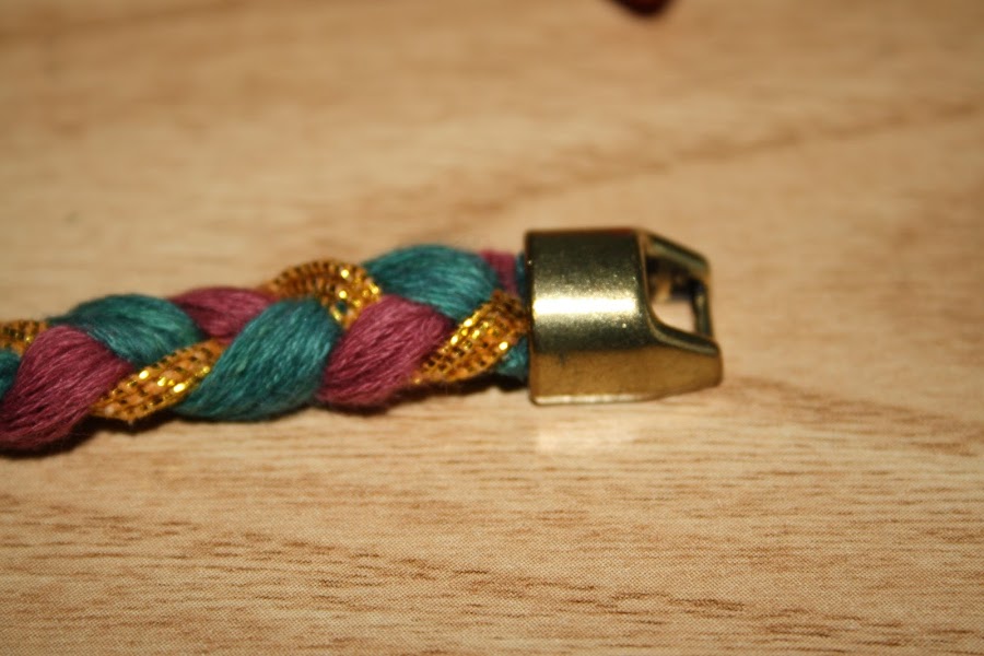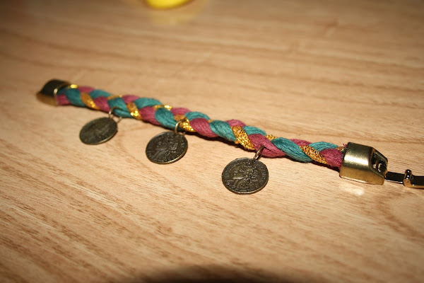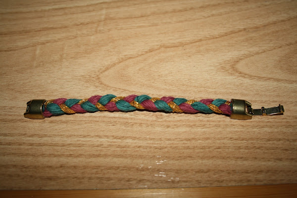 Eso justamente fue lo que me pasó cuando al acortar un cordón de un bolso me encontré que tenía sobrante suficiente para hacerme una pulsera...(carita sonriente).
