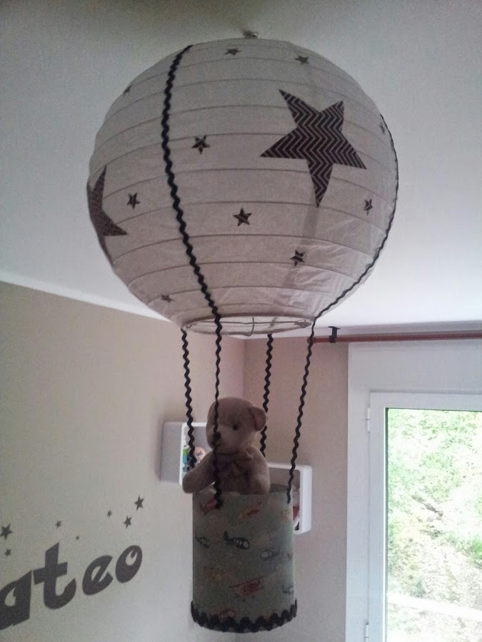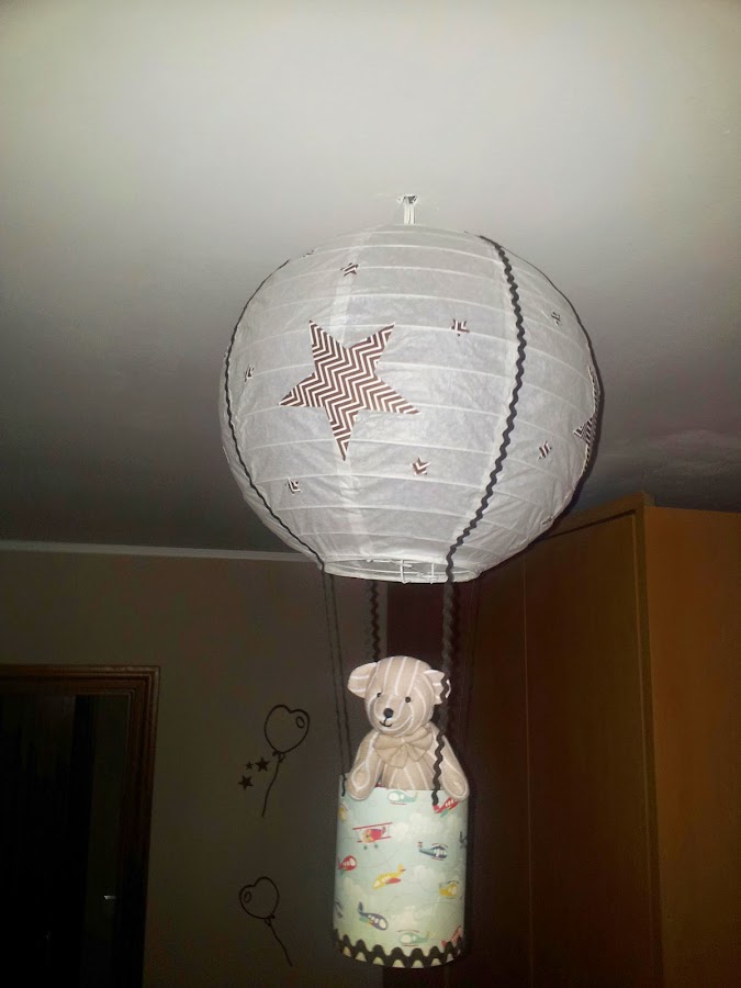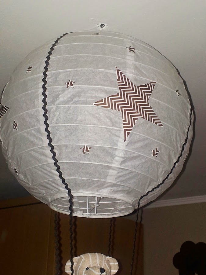 Para variar un poco, en esta entrada os enseño la lámpara que le he hecho para la habitación al nuevo miembro de la familia " MATEO "