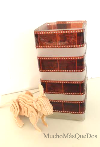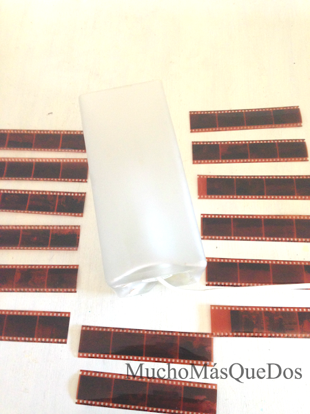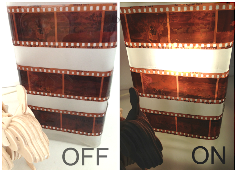 Luego es tan simple como pegar los negativos como más te guste, decorando tu lámpara o pantalla.
